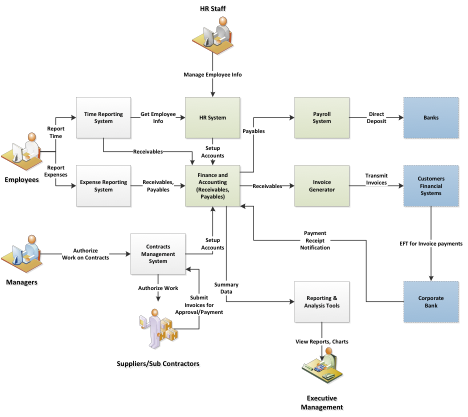 The number of diagrams that result from this effort will vary by the goals and scope, along with the number of business units involved and the number of core business processes examined. In general, we strive to create an enterprise-wide view of the systems as the primary model view for each core business process. We find these views give the best set of information that enables the all-important discussions of: