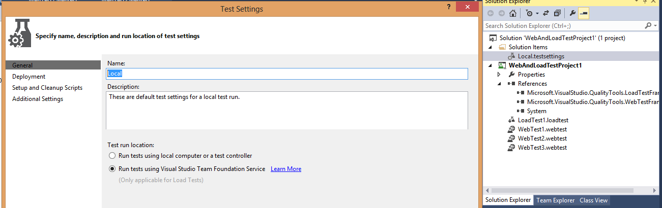 If you have existing load tests that you created using Visual Studio 2010 or Visual Studio 2012, open your existing project using Visual Studio 2013 first.