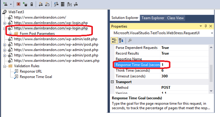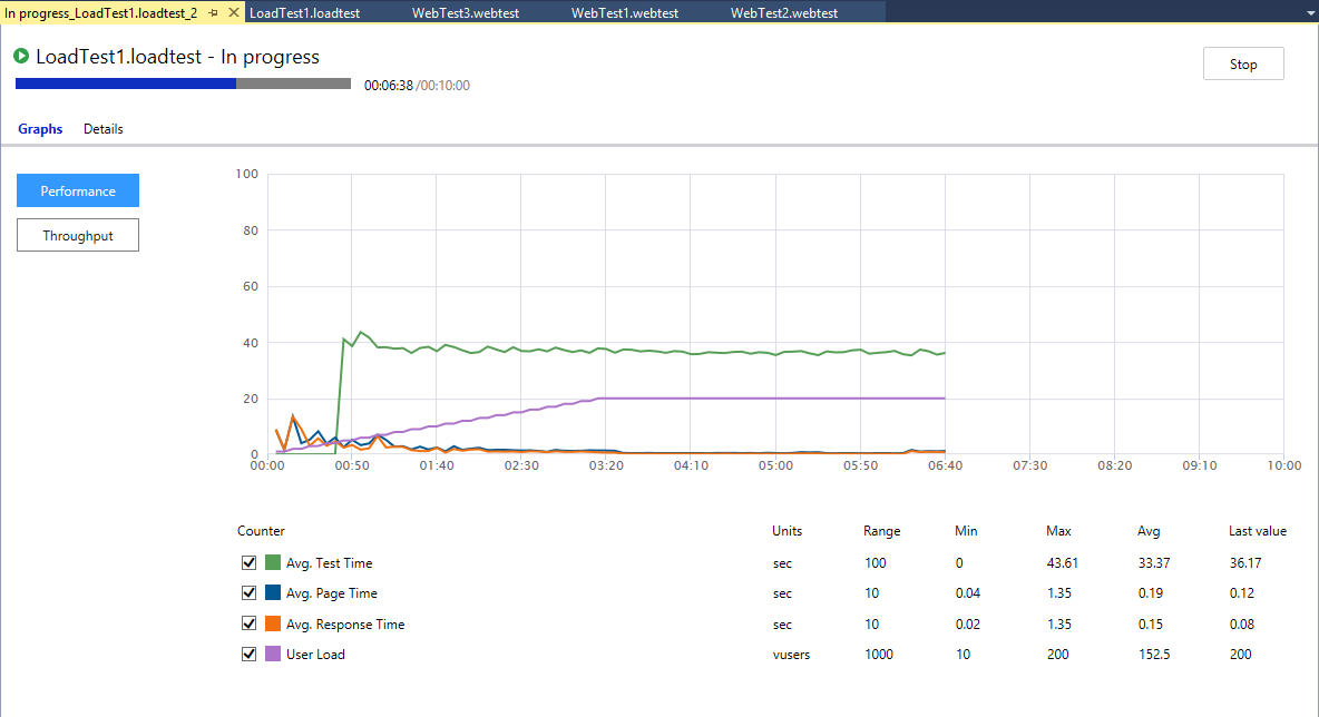 - When you are done, just stop recording. Edit any test properties that you wish to change the performance goals for.