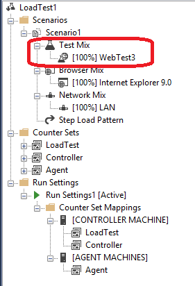 When you finish the wizard, the Web performance test is added to the load test and appears in the load test editor.