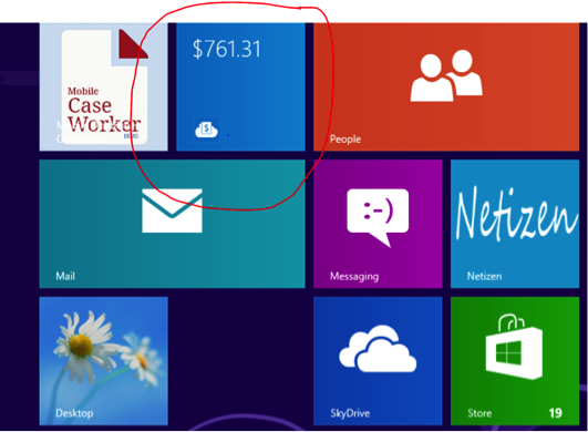 This app is perhaps the simplest Windows 8 app you can find in the store. Literally the only piece of UI is the live tile that displays your current Azure balance. You don’t even have the need to have the app running!