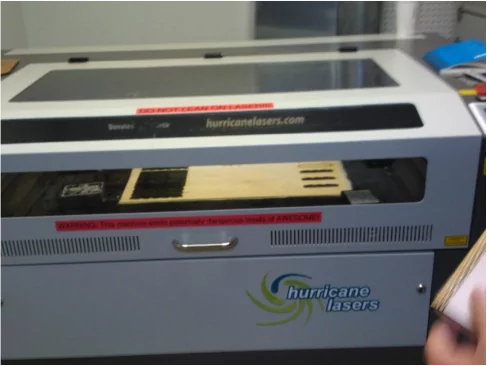 This is a high-precision laser cutter. If you have a drawing — a science project, home improvement or just about anything, really — this machine can cut it for you. It can cut through wood, plastic, or metal.