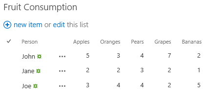 function GetChartDataSuccess(sender, args) { var splistitemcount = splistitems.get_count(); if (splistitemcount != 0) { var splistitemenumerator = splistitems.getEnumerator(); while (splistitemenumerator.moveNext()) { var currentlistitem = splistitemenumerator.get_current(); var itemname = currentlistitem.get_item("Title"); var itemapples = currentlistitem.get_item("Apples"); var itemoranges = currentlistitem.get_item("Oranges"); var itempears = currentlistitem.get_item("Pears"); var itemgrapes = currentlistitem.get_item("Grapes"); var itembananas = currentlistitem.get_item("Bananas"); var seriesitem = { name: itemname, data: [ itemapples, itemoranges, itempears, itemgrapes, itembananas ] }; seriesarray.push(seriesitem); } DrawChart(); } }